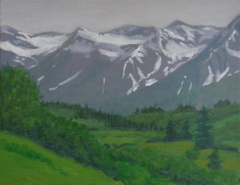 “Rainbow Glacier From the State Park” oil 9″x12″ 2018 SOLD